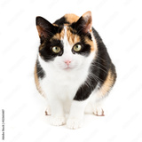 Cat looking curious into the camear, isolated in white