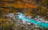 Beautiful Turquoise Coldred Soca River in Trenta Valley Slovenia