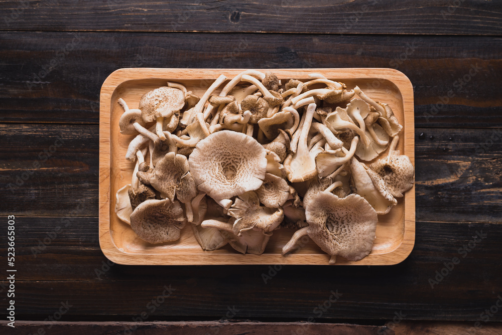 Fresh edible mushroom (Lentinus squarrosulus), Organic food ingredients in autumn season