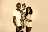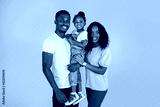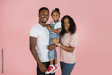 Loving family. Happy african parents and their daughter embracing each other standing over pink studio background, copy space.