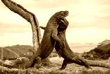 Komodo Dragons are fighting each other. Indonesia. Komodo National Park.