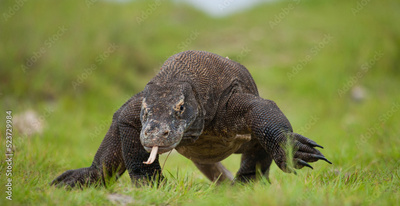 Komodo dragon is on the ground. Indonesia. Komodo National Park.