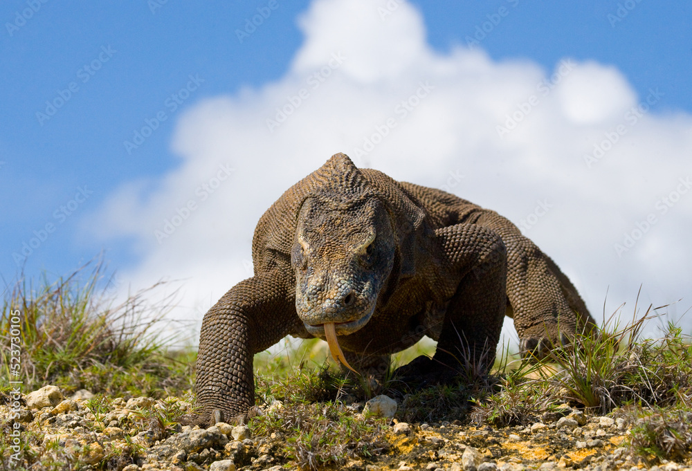 Komodo dragon is on the ground. Indonesia. Komodo National Park.