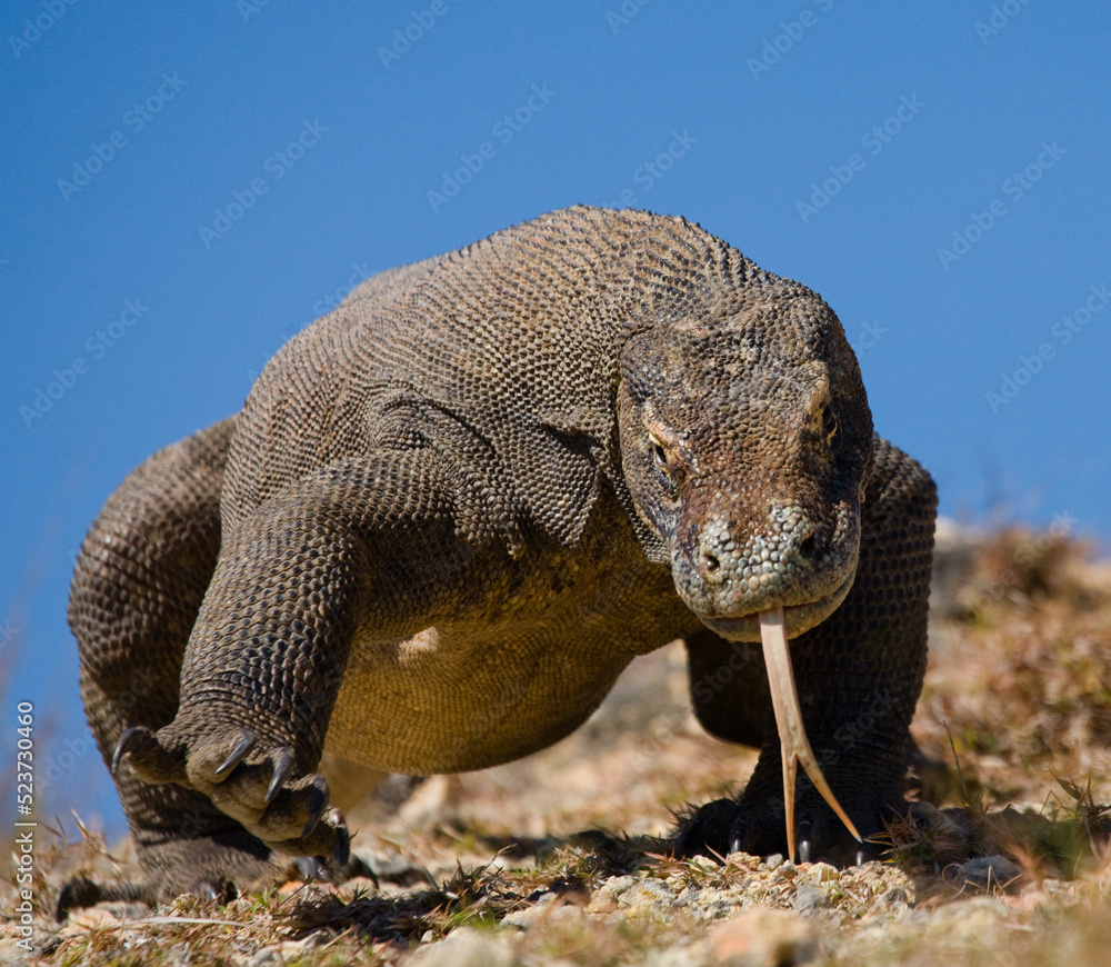 Komodo dragon is on the ground. Indonesia. Komodo National Park.