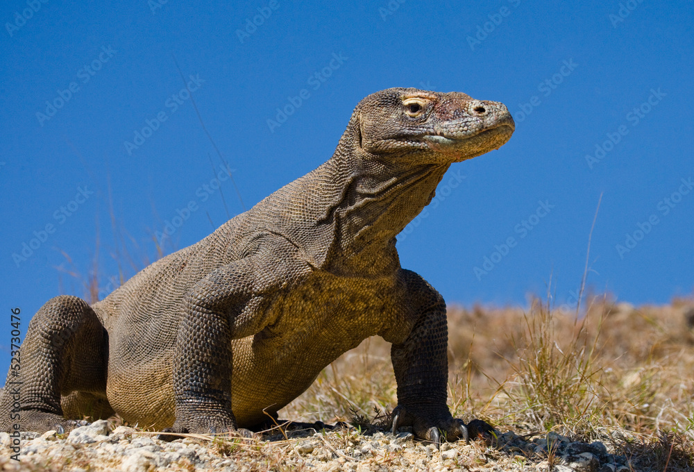 Komodo dragon is on the ground. Indonesia. Komodo National Park.