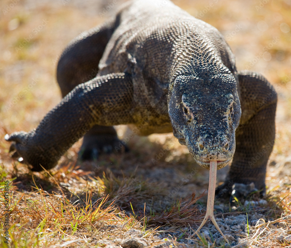 Komodo dragon is on the ground. Indonesia. Komodo National Park.