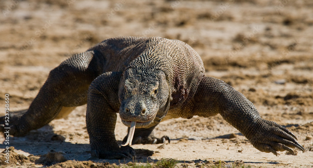 Komodo dragon is on the ground. Indonesia. Komodo National Park.