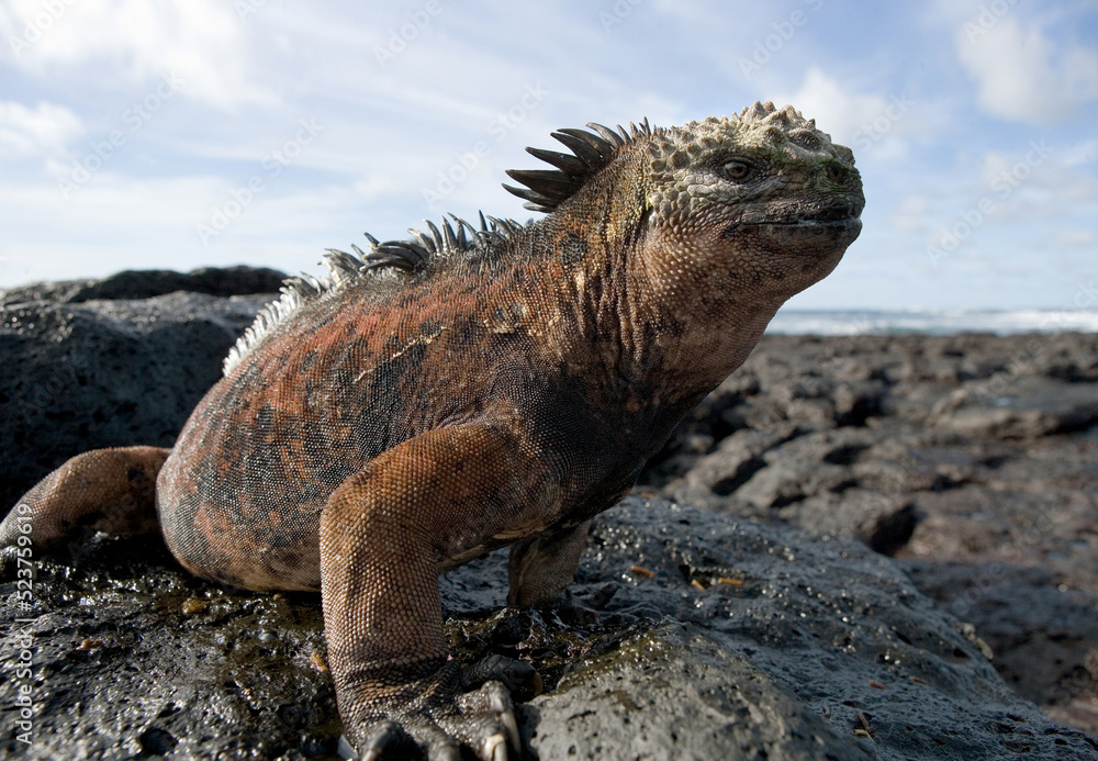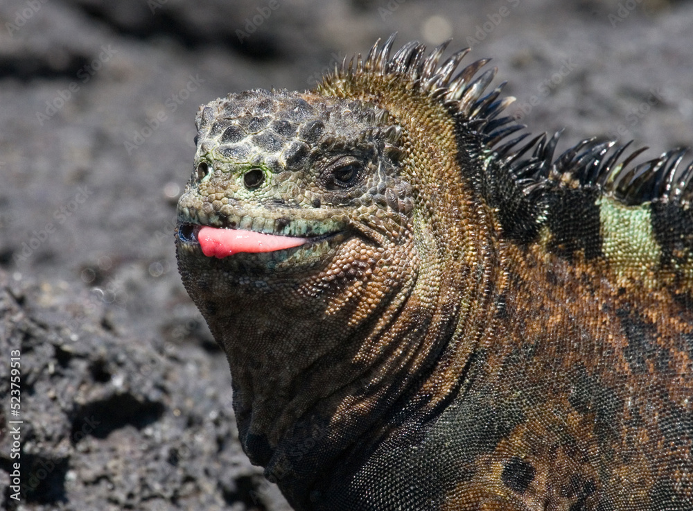 Portrait of the marine iguana (Amblyrhynchus cristatus). Galapagos Islands. Pacific Ocean. Ecuador.