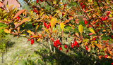 Red berries of barberry on a bush branch close-up
