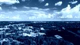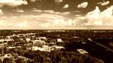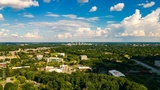 Beautiful aerial view of Greensboro with forests and buildings on a sunny day in Piedmont Triad, NC