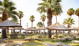 beach background at sunrise, front view. Aspat Beach, Bodrum, Turkey