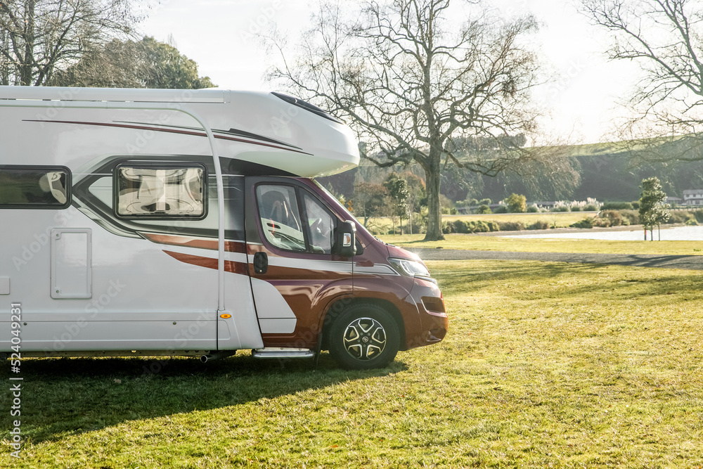 motorhome on a camping ground, caravan vacations, campervan trip