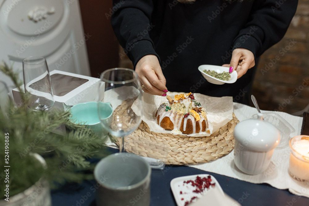 the process of decorating a Christmas cake with your own hands, the concept of New Year holidays
