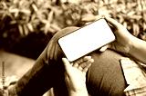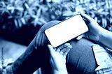 Top view, A female using her smartphone to watch an online video. phone white screen mockup.