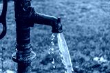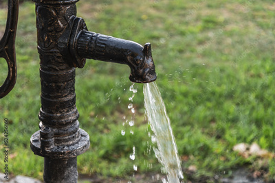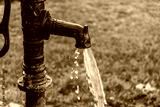 Water jets pour from an old column