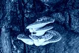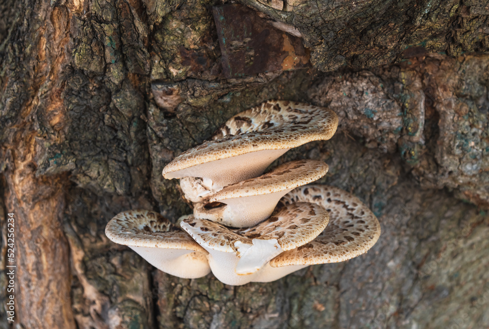 Tree mushrooms on the bark of an old tree.