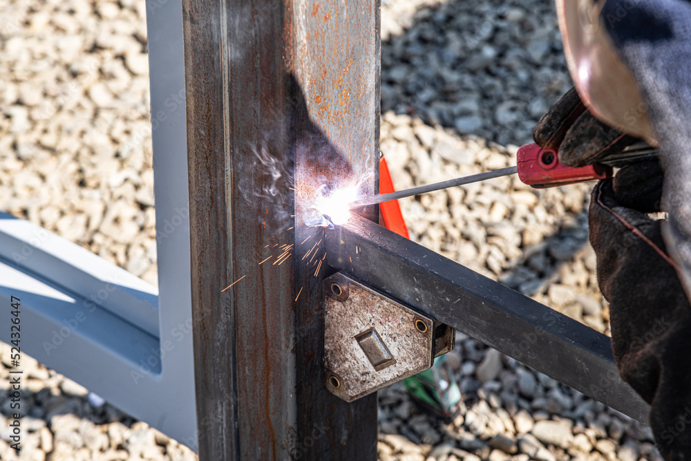 Metal welding. The work of a welder with metal structures.