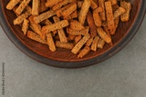 Appetizing snacks. Bread snacks are oblong. Fried bread snacks.