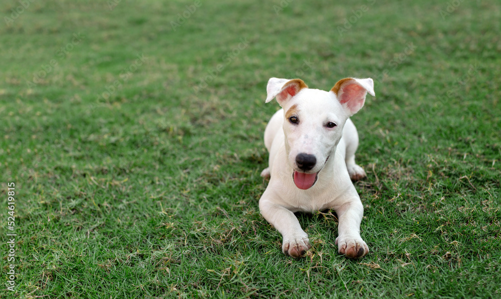jack russel dog portrait on green grass