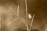 The zitting cisticola or streaked fantail warbler bird sits on a reed
