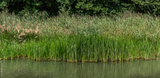 Trawy wyrastające sponad małej rzeczki, w porze letniej