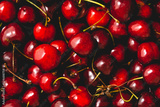 Ripe juicy sweet cherries. Close up shot. Top view, flat lay