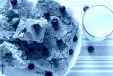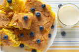 handmade sponge cake or sponge biscuit with blueberries on white ceramic plate.
