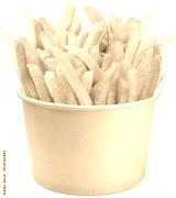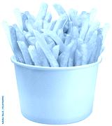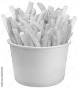 French fries in paper bucket isolated on white background, French fries on white With png file.