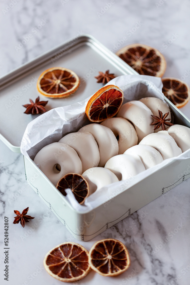 Rousquilles, french and spanish traditional sweet dessert, in a festive box