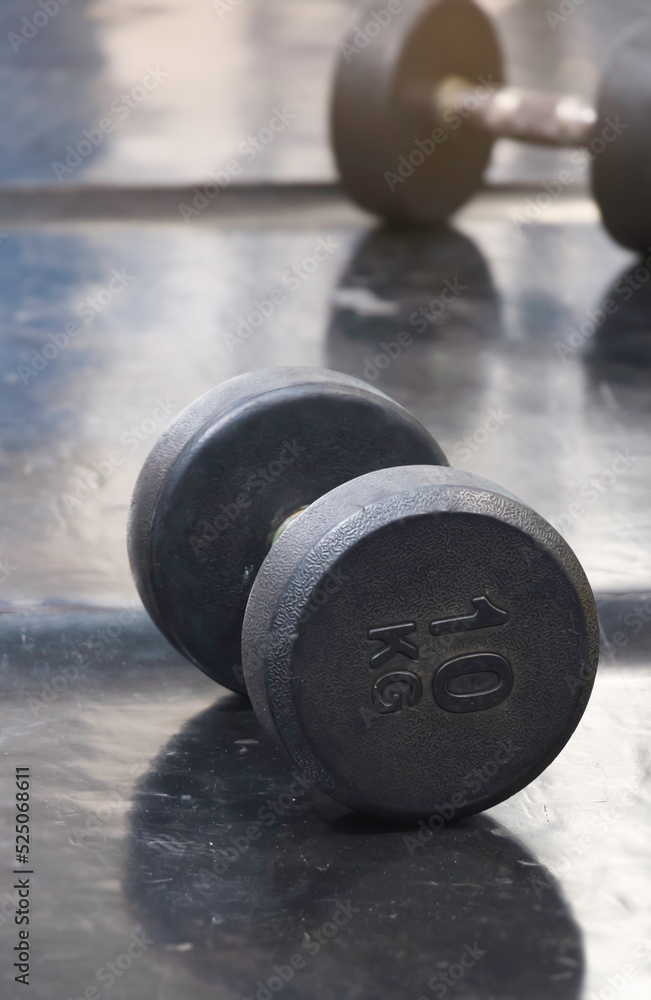Dumbbell 10 kilograms put on rubber floor,equipment for weightlifting,