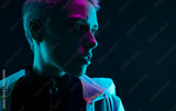 Young futuristic female model in darkness