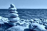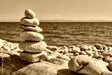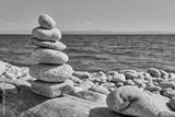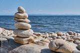 Pyramid of stones on shore of Barguzin Bay, Lake Baikal, Zabaikalsky National Park, Russia.