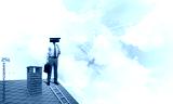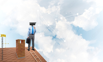 Concept of security and privacy protection with camera headed man