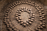 Skulls and bones arranged in Lima catacombs, Peru.
