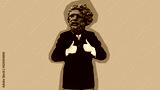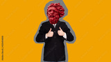 Abstract modern collage. The man with the plaster head of David showing thumbs up