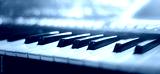 Piano keyboard background was set up in the music room by the windows in the morning to allow the pianist to rehearse before the classical piano performance in celebration of the great success.