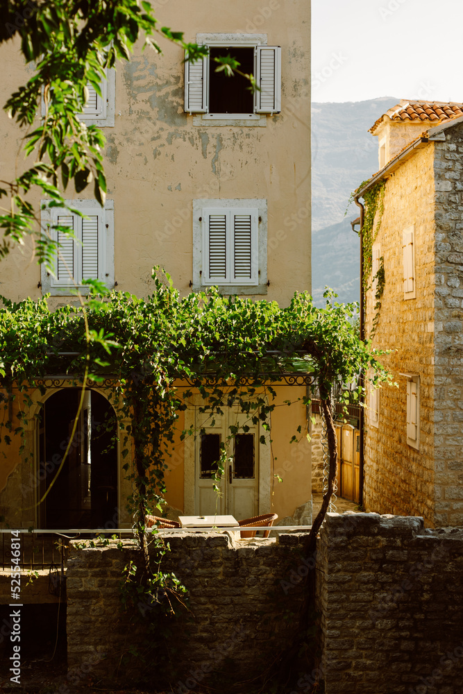 Beautiful street in Budva old town, Montenegro. Summer sunny day.