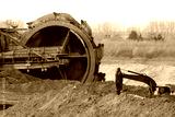 Large mining wheel of coal digger in action