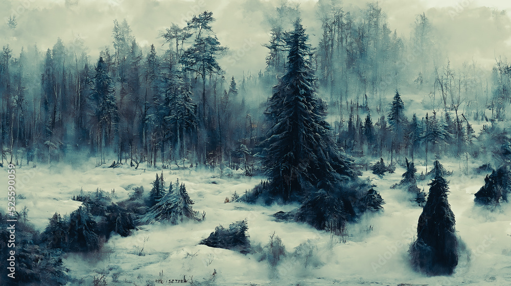 Artistic concept of painting a scary and dangerous landscape, background illustration, tender and dreamy design.