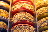 cakes with ice cream on the store counter. dessert for coffee, tea