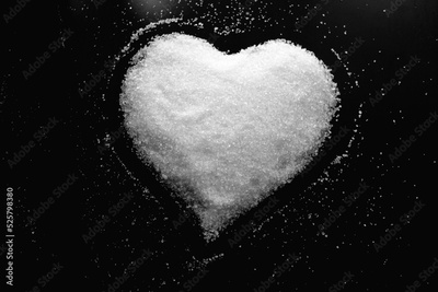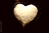 Abstract photo with image of heart made of white sugar on dark background as symbol of love