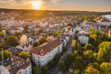 Aerial view of Sopot and the buildings of the seaside village. A warm summer afternoon creates a pleasant atmosphere in the photo.