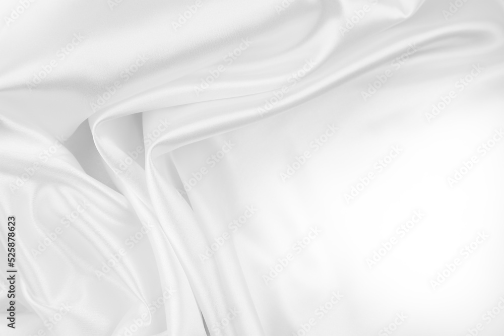 Rippled white silk fabric. Copy space