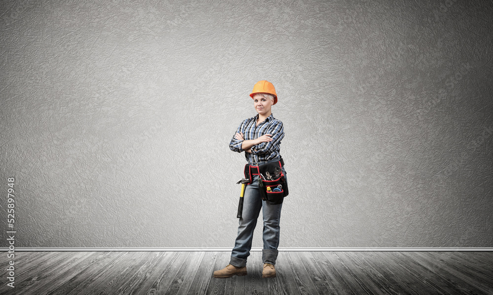 Attractive female engineer in hardhat
