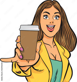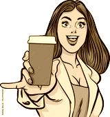 pop art comics cartoon expression character with cup of coffee,beverage