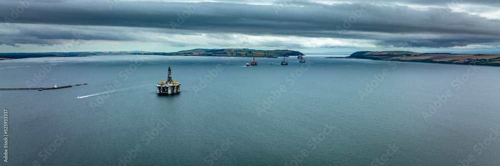 Aerial view of the black island and Cromarty firth in the north east highlands of Scotland during autumn