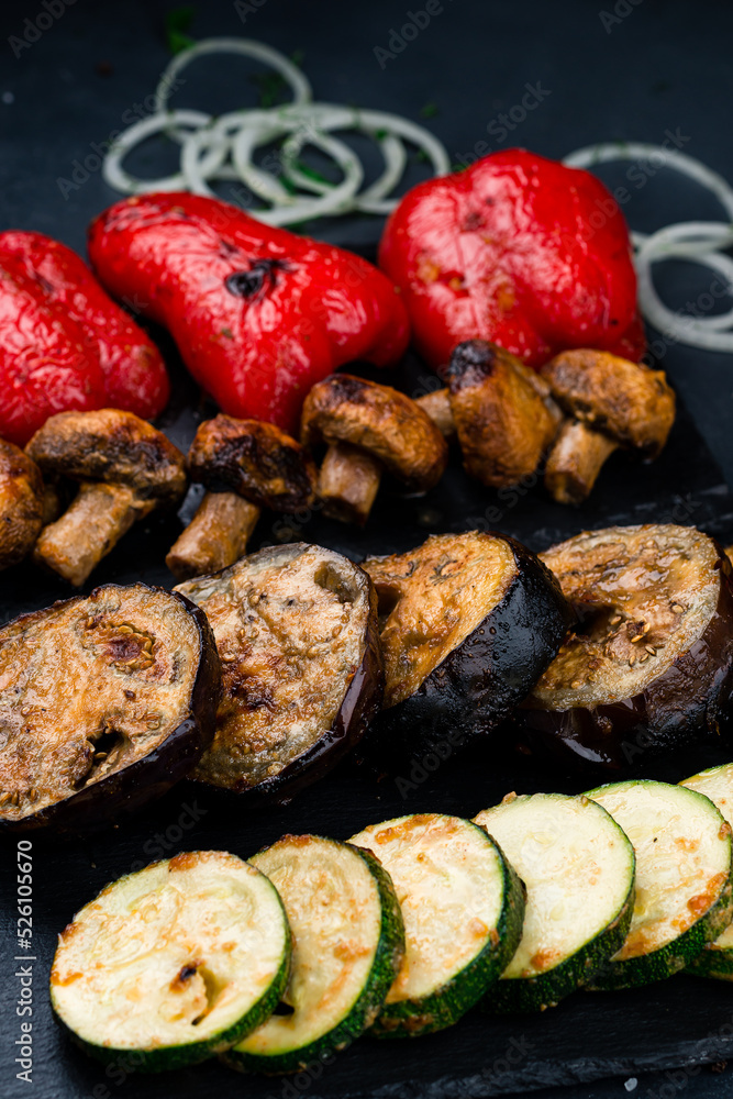 Assortment various barbecue vegan food, set of grill veggies, vegetable bbq party fest