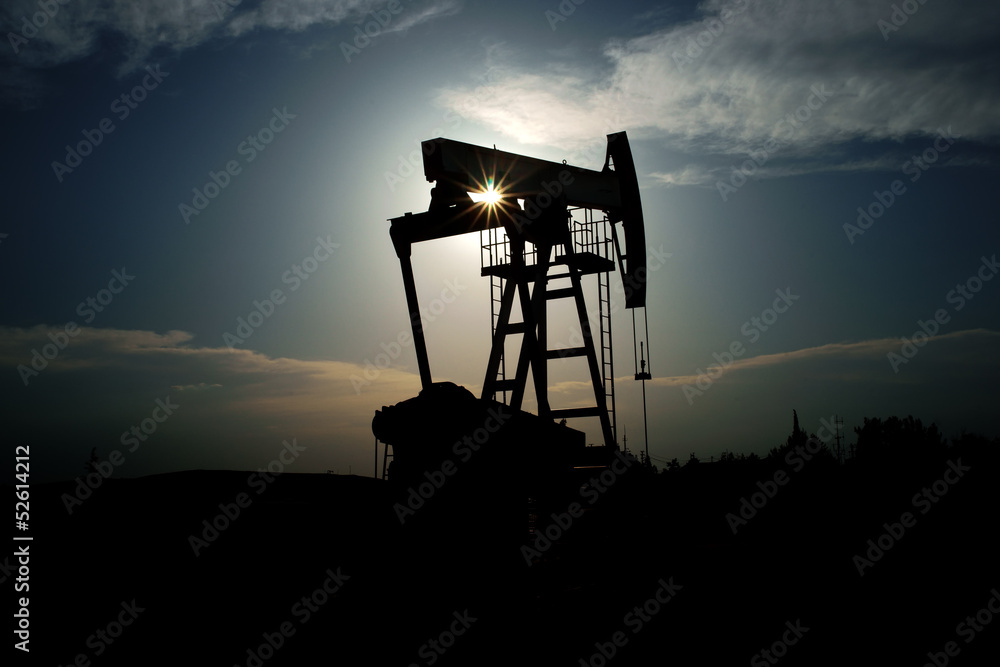 Oil pump with sun beams going trough the machine.