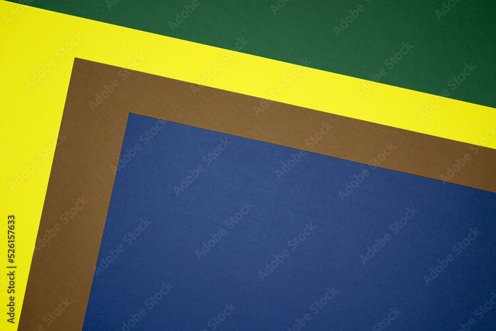Brown, yellow, green, blue four tone color paper background with stripes. Abstract background modern hipster futuristic. Texture design