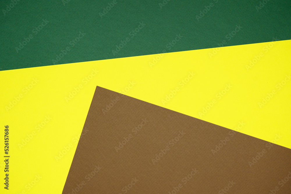 Brown, yellow, green three tone color paper background with stripes. Abstract background modern hipster futuristic. Texture design